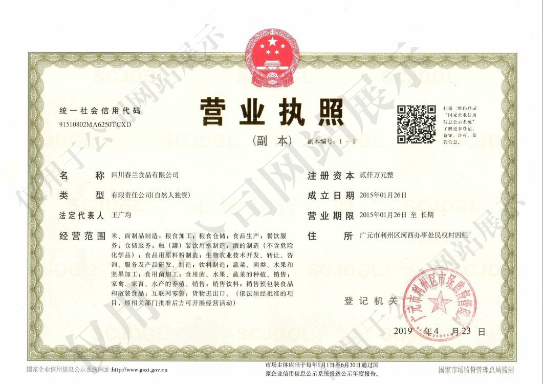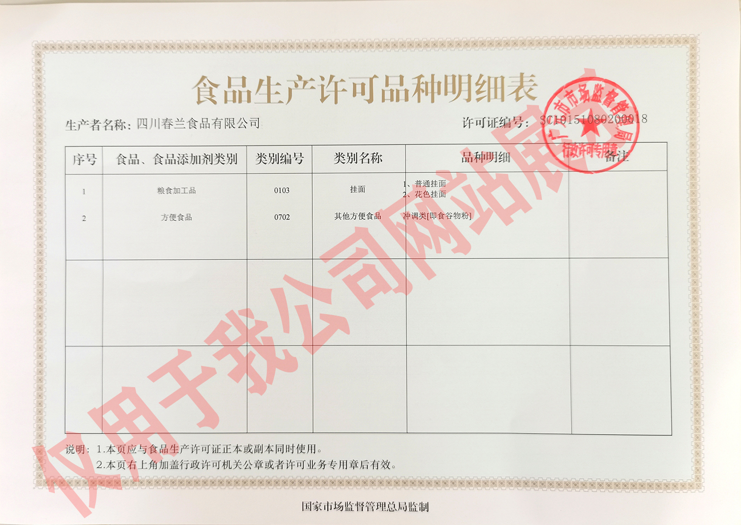 四川春蘭食品有限公司成立于2015年1月,主要從事生產天然曬干面、富硒沖調食品、富硒大米、富硒白酒等產品生產加工銷售企業。是以多元化、組合式發展為一體的綜合性企業。公司占地面積15余畝,注冊資金2000萬元,建有6000平方米標準廠房,擁有兩條全自動掛面生產線,一條沖調食品生產線,現有員工35人,專業技術及質量管理人員6人,具有年產1.5萬噸中高檔系列掛面、50噸富硒沖調食品和20噸富硒白酒的生產能力,年產值達八千萬元左右。公司研發生產的富硒掛面系列(富硒掛面、富硒香菇面、富硒苦蕎面、富硒粗纖維掛面、富硒綠豆面、富硒平菇面)以及普通曬干面為依托,公司注冊商標“悅福星”以地道的“農家味道”和“天然曬干”的特點,產品深受消費者厚愛。公司堅持以“質量促品牌,品牌促發展”的經營理念,加強品牌建設,提升質量管理,使企業在食品質量安全方面有了很大的提高,在今后的發展中不斷提升市場的競爭力。 ...... 更多